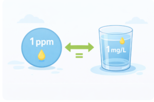 水質検査では、同じ「濃さ」を見ているのにppmとmg/Lが出てきます。