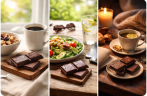 チョコレート効果72%は体に良いと言われますが、「いつ食べるのがいいのか」で迷う人は多いです。実は朝・昼・夜で感じ方やメリットが少しずつ変わります。