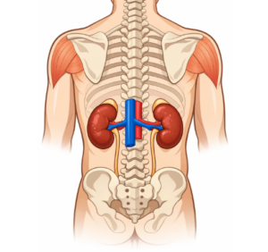 腎臓は、お腹の中ではなく背中側、ちょうど腰の少し上あたりにあります。