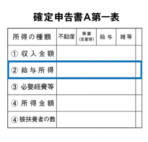 図:確定申告書Aでの「給与所得」欄の位置イメージ