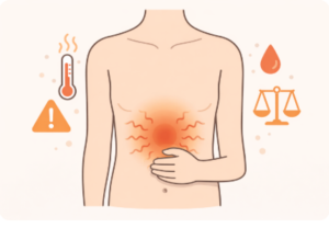 胃や十二指腸が関係しているように見えても、強い痛みが続く、吐く、冷や汗、 黒っぽい便などがある場合は、ここで様子見せず受診を検討してください。※この記事は診断ではなく、整理のためのガイドです。