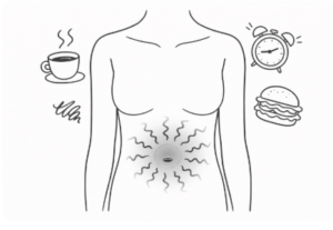 胃・十二指腸は食べ物が通る道の途中なので、痛みや不快感が食事のタイミングとセットになりやすいです。 ただし断定はできないので、「何と一緒に出るか」をメモしておくと判断しやすくなります。