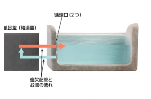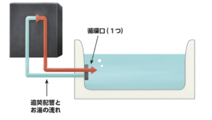 - 1つ穴タイプは浴槽の1か所から吸い込み・吐き出しを兼ねる構造